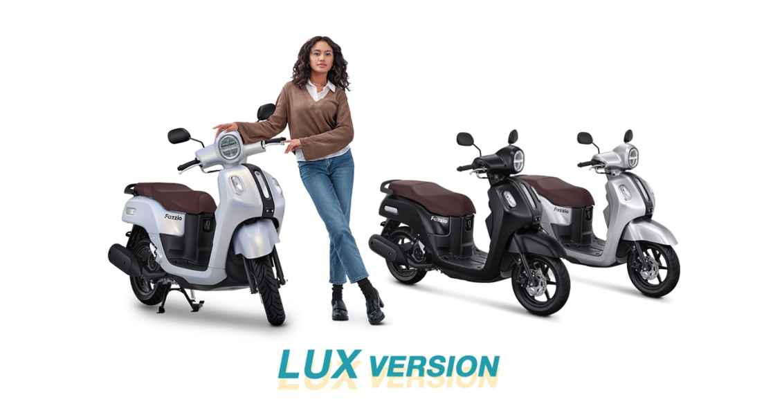Bagi pengendara yang ingin terlihat unik serta menonjolkan sisi elegan namun tetap terlihat casual, Yamaha Fazzio Hybrid-Connected varian LUX menambah satu warna baru untuk melengkapi LUX Matte Black dan LUX Prestige Silver yaitu LUX White Pearl yang semakin menambah kesan premium bagi pengendaranya.